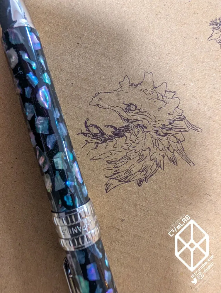 かなり軽い筆圧で書けるし、わずかな筆圧にもよく反応してくれてインクが載ってくれる。油性のボールペンで絵を描いたことって、子供の頃以来ほとんどなかったんですが、これはちょっと描いてみたいな、と思う書き味で。